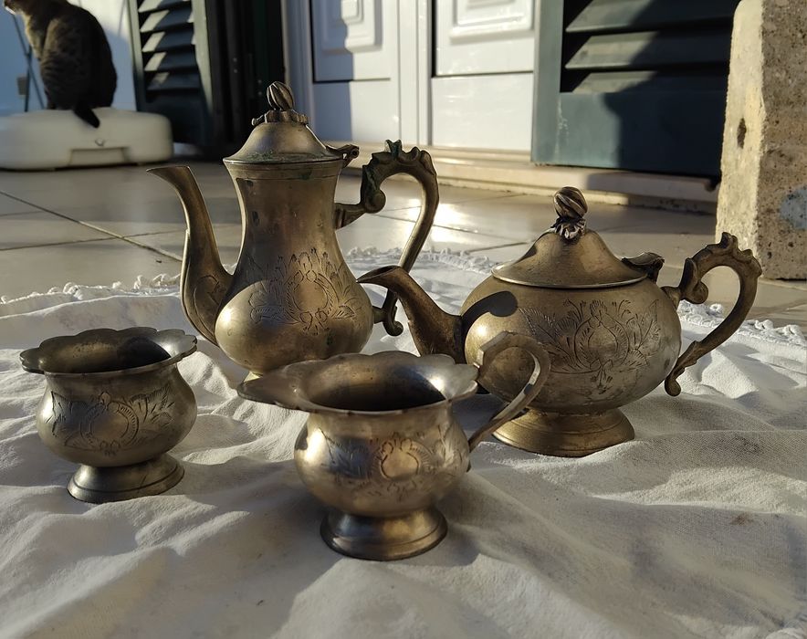 Conjunto de chá vintage em latão