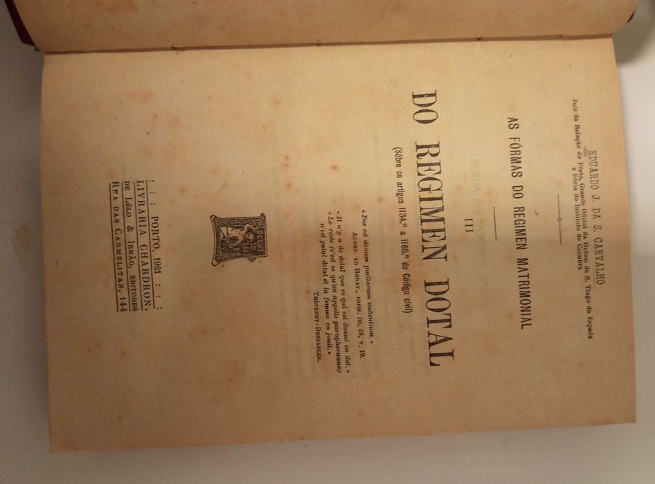 As formas do regimen matrimonial, de Eduardo J. Da S. Carvalho (juiz da relação do Pôrto, Grande Oficial da Ordem de S. Tiago da Espada e Sócio do Instituto de Coimbra)