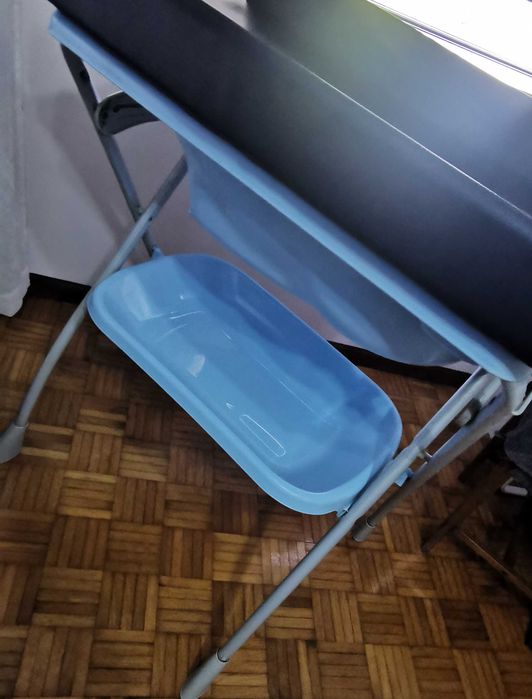 Banheira de bebé com muda fraldas, em azul bebé. Muda fraldas em bom estado, sem qualquer buraco.