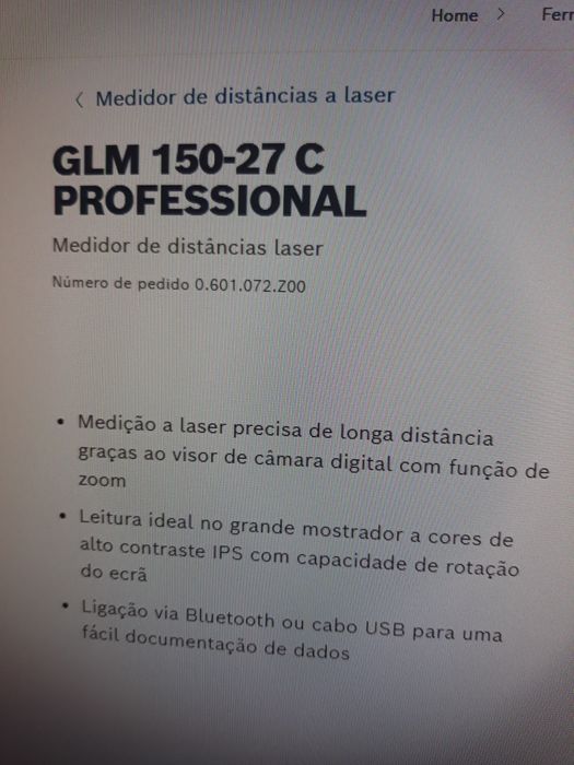 Medidor de distâncias a laser BOSCH profissional. Medição precisa de distâncias até 150 metros. Novo na caixa. Entrega em mão em Lisboa. Contacto por mensagem no WhatsApp ou OLX.