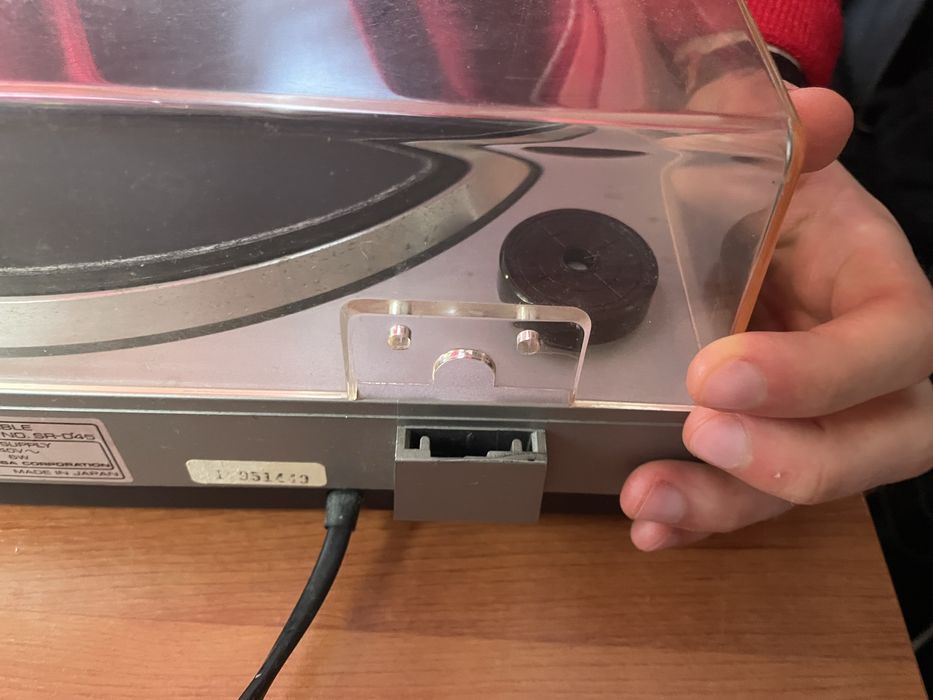 Gira discos sem as peças que juntam a tampa ao prato.