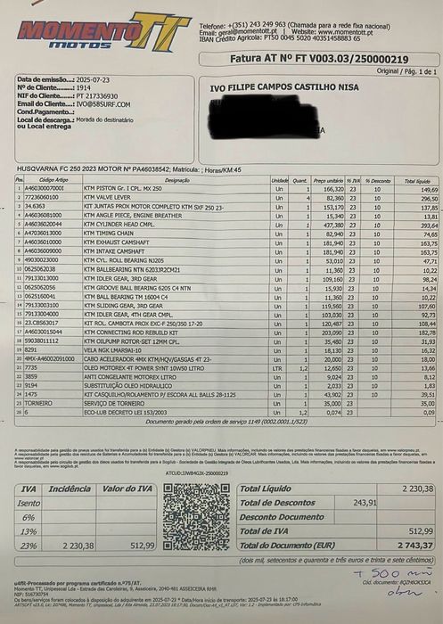 Tudo feito na Momento TT onde pode verificar histórico, faturas e tudo o q foi feito +3000€ Garantia todo o trabalho de motor feito.