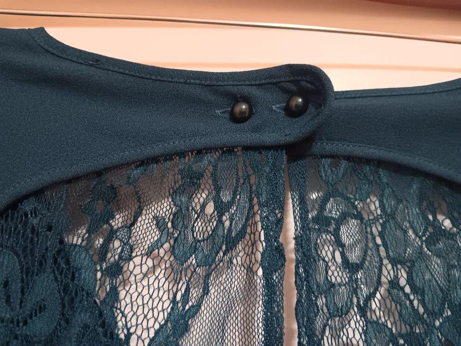 - Detalhes em renda na zona das costas (abertas).