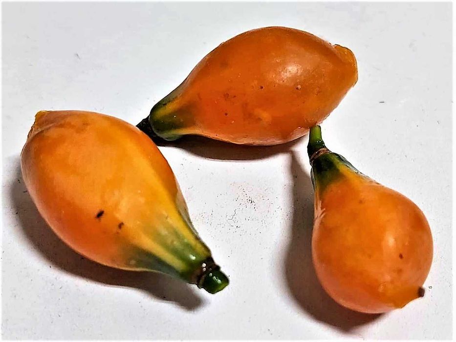 Mamão pequeno e muito saboroso, com múltiplas propriedades podendo ser consumido ao natural ou em compotas e doces. Os frutos entre o amarelo e o alaranjado, conforme a maturação apresentam umas faixas mais claras enquanto verdes, fazendo as delicias do olhar nas arvores.