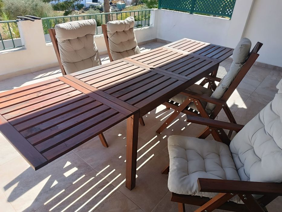 Conjunto de exterior IKEA ÄPPLARÖ: 1 mesa + 4 cadeiras, em ótimo estado.