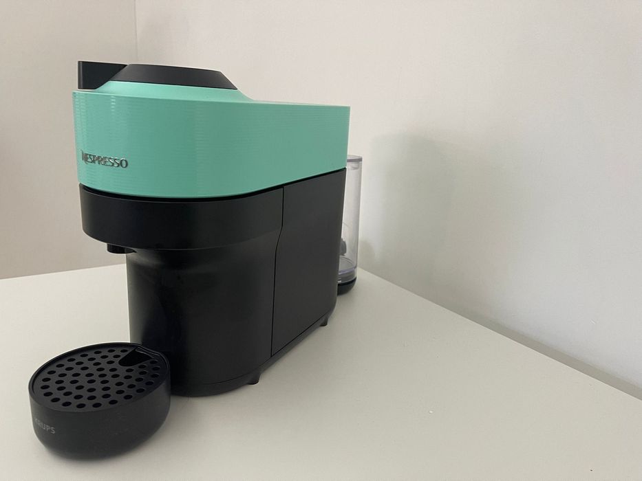 Máquina de café Nespresso Vertuo Pop em cor verde menta. Modelo compacto e elegante, ideal para ter em casa ou no escritório. Prepara diferentes tipos de bebidas de café com facilidade.