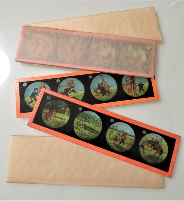 Conjunto de 3 placas de vidro com imagens para LANTERNAS Mágicas. Antigas e ORIGINAIS. RARÍSSIMAS Acresce portes.