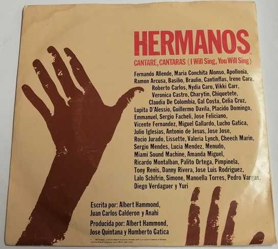 single Hermanos ‎– Cantare, Cantaras (I Will Sing, You Will Sing) 1985