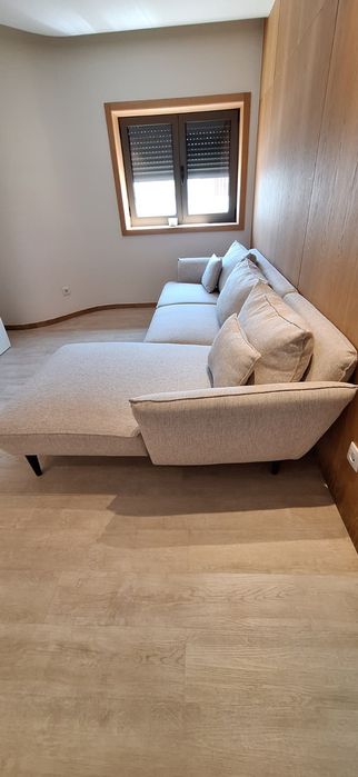 Sofá bege com chaise longue