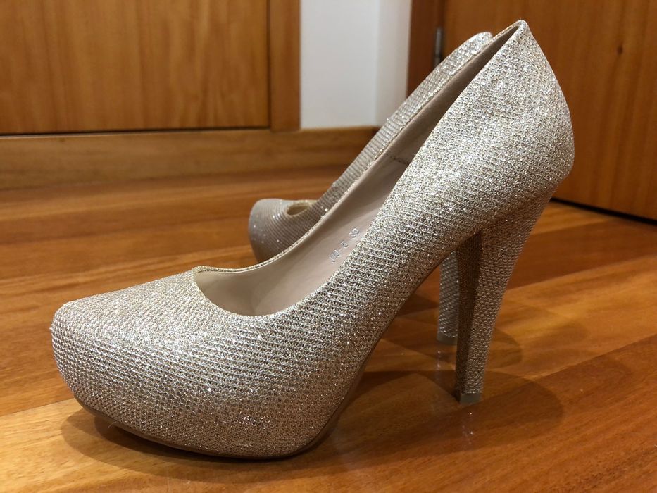 sapatos dourados em Calçado