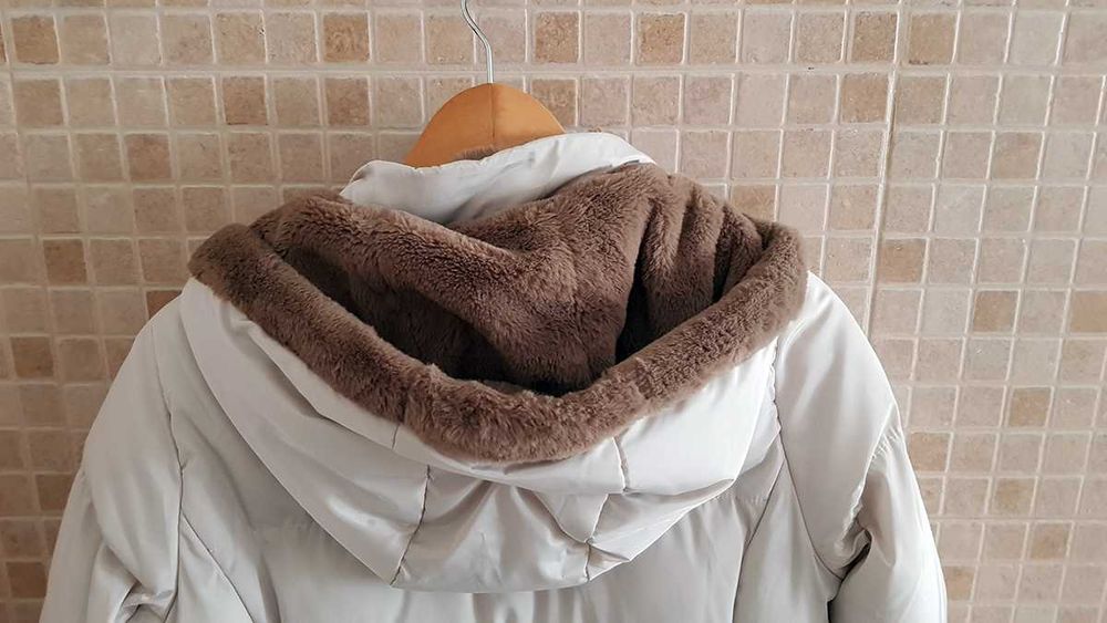 Blusão de penas cinza claro com capuz e forro de lã (senhora) Tiffosi