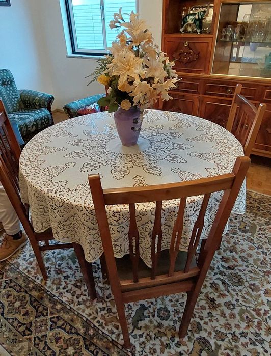 Mesa redonda extensível + 6 cadeiras