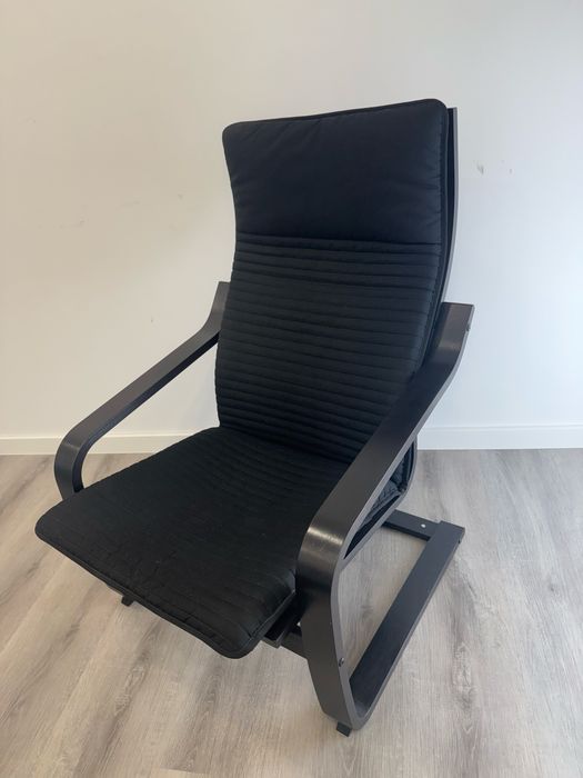 Cadeira preta com braços de madeira