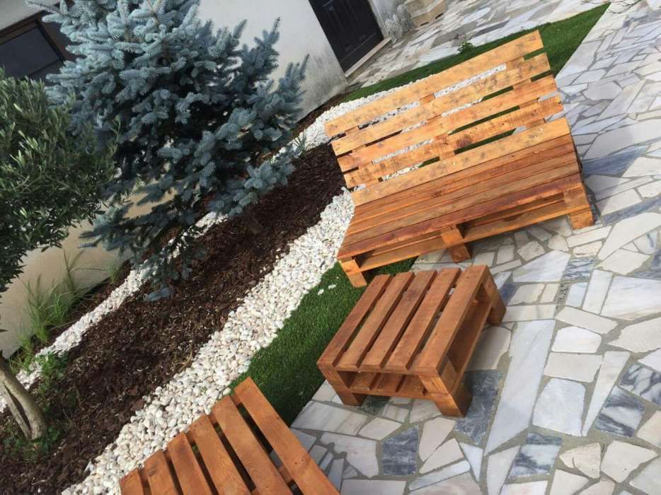 mesa com cadeiras jardim em Móveis