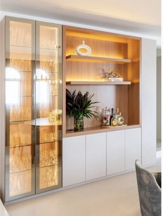 estante com portas de vidro em Armários e Roupeiros