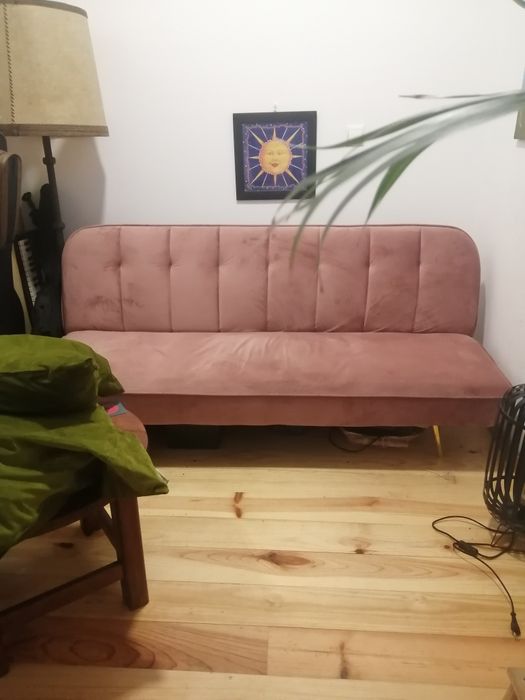 Sofá Clic-Clac usado cor de rosa