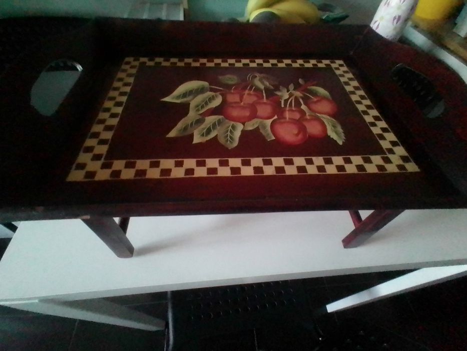 Tabuleiro em madeira com pés rebatíveis