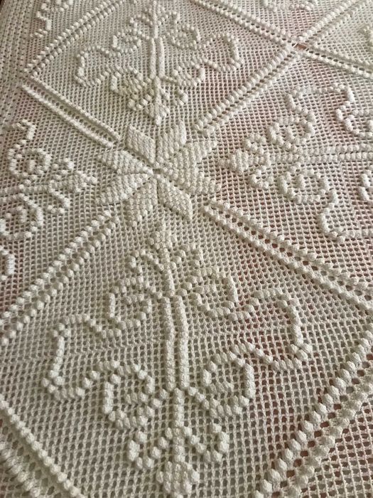 colcha crochet antiga em Têxteis